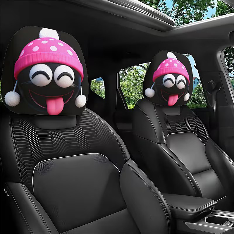2pcs Surprised Expression Hat Printed Car Headrest Covers, Car Decor, No Filling, Easy to Install and Wash, Suitable for Long-Distance Travel to Relieve Fatigue, Perfect Funny Car Decor