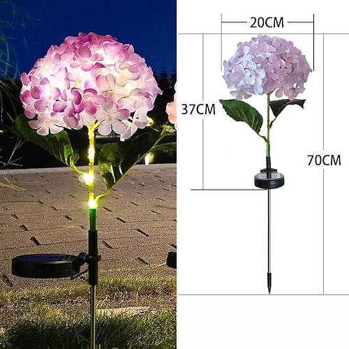 luci solari da giardino per esterni, luci da giardino a LED impermeabili alimentate ad energia solare con fiori di ortensia, per patio, cortile esterno, vialetto decorativo, arredamento