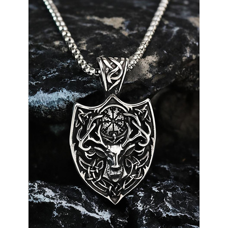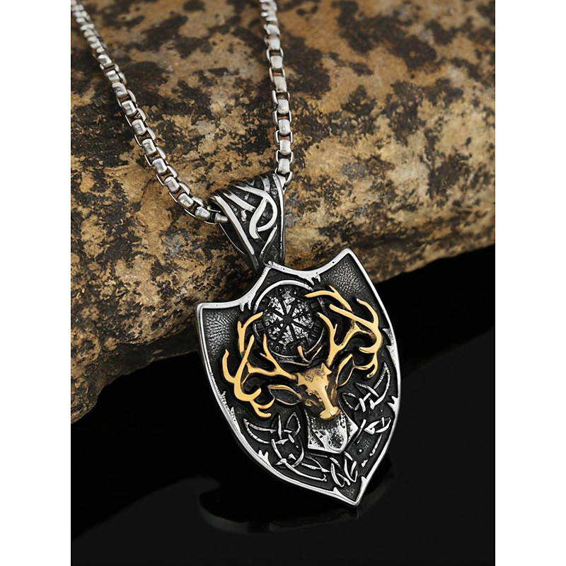 Men's Stainless Steel Viking Deer Head Pendant Necklace with Shield Design, Norse Celtic Amulet Jewelry for Christmas Gifts, Parties Daily Wear