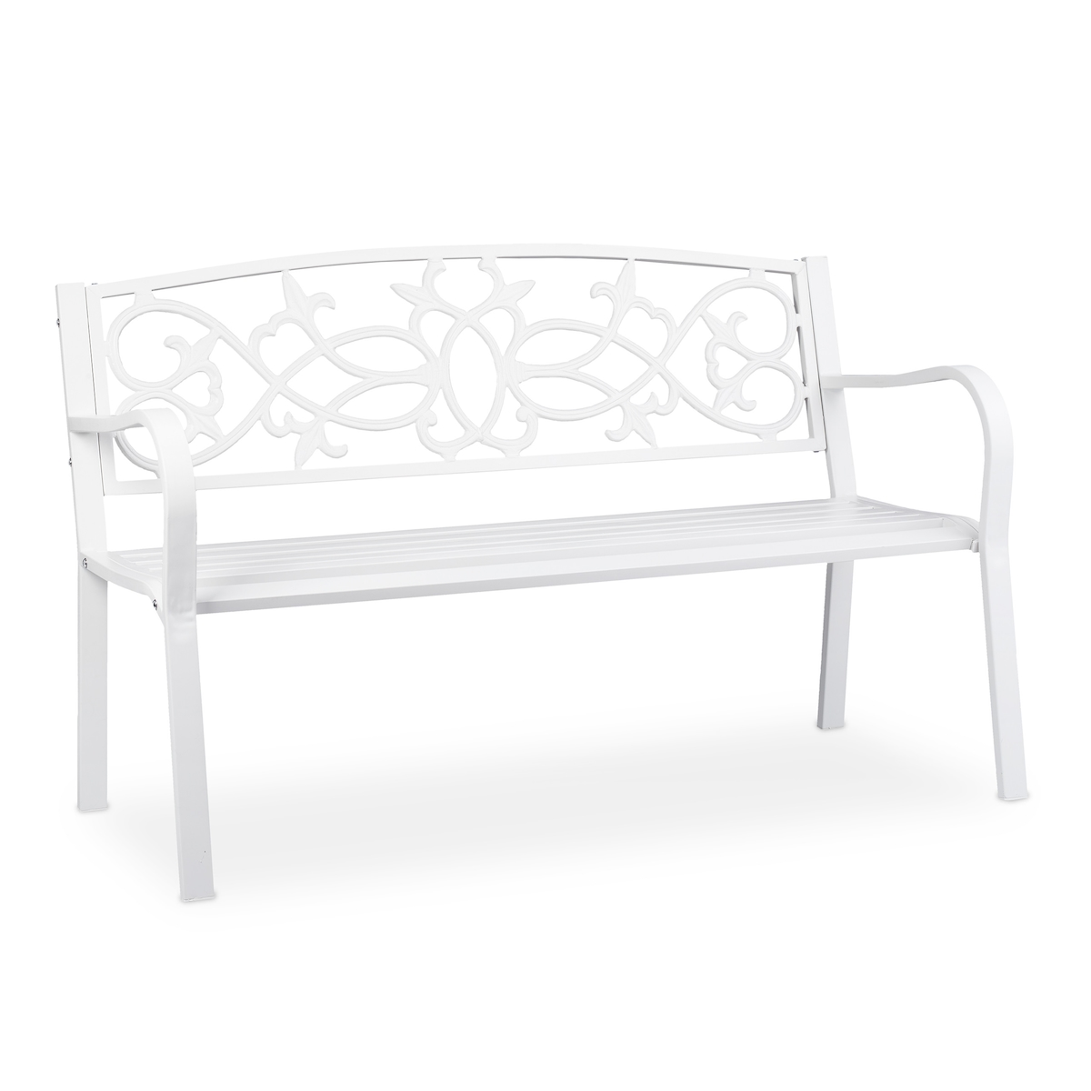 Relaxdays Gartenbank Antik für 2 Personen, Balkon, Terrasse, Metallbank HBT 90x127,5x63 cm, Stahl, Guss, weiß-bronze
