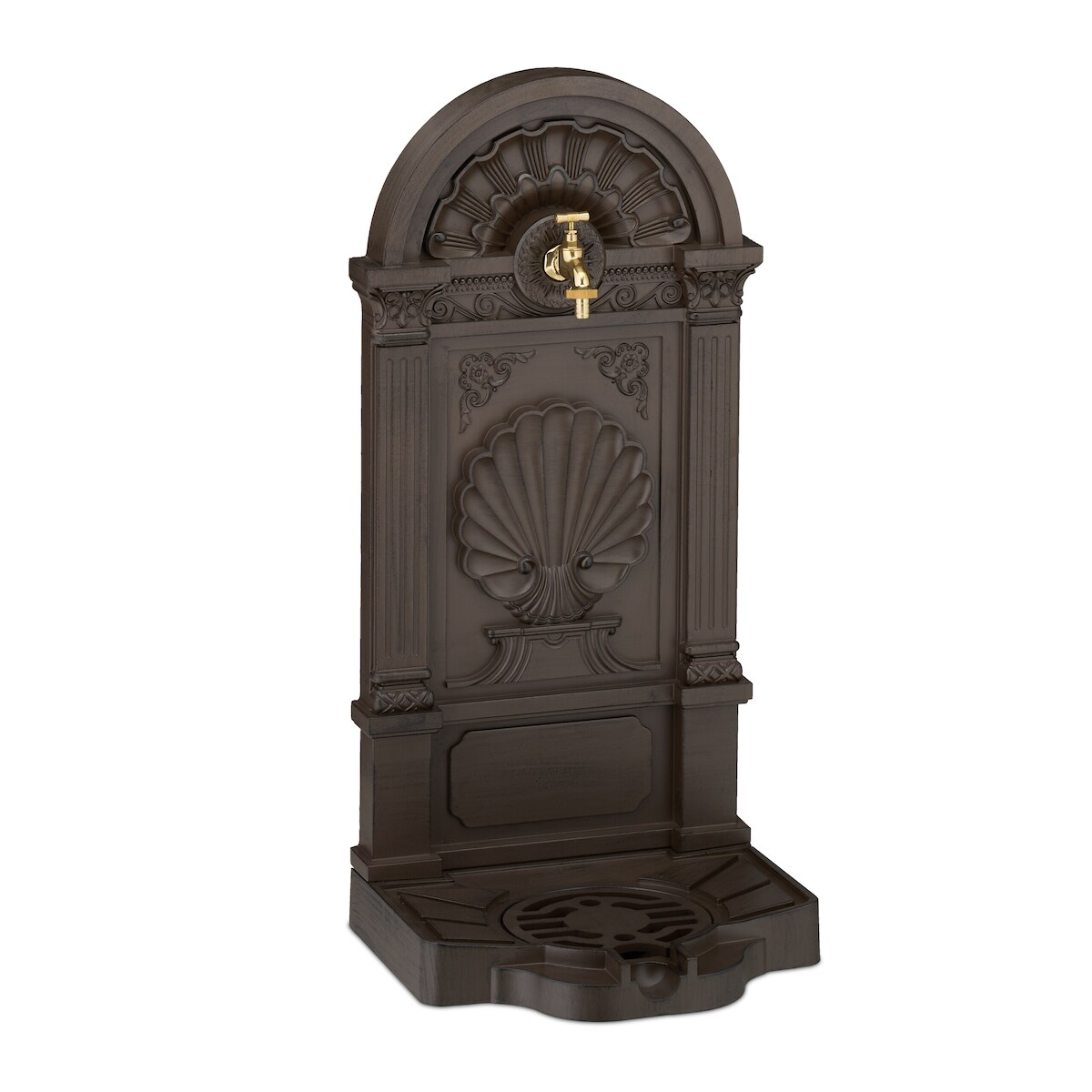 Relaxdays Wandbrunnen, Antik-Stil, Nostalgie, Garten, Terrasse, Wasserhahn, Becken, hängend, HBT: 62 x 38 x 20 cm, grün