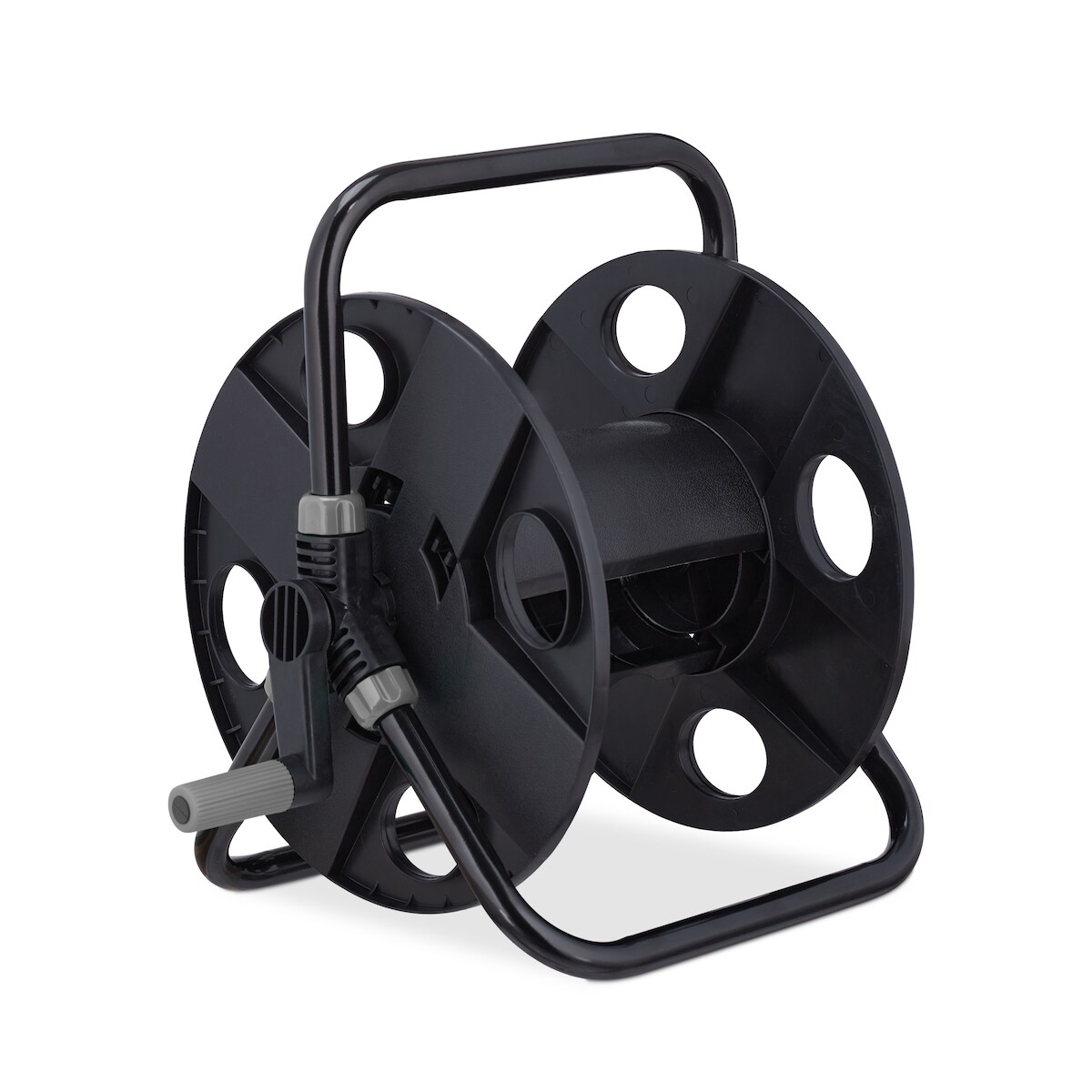 Relaxdays Schlauchhalter, 2er Set, Stahl, für 45 m 5/8" Schlauch, Schlauchhalterung Wand, HBT: 19x30,5x13,5 cm, schwarz