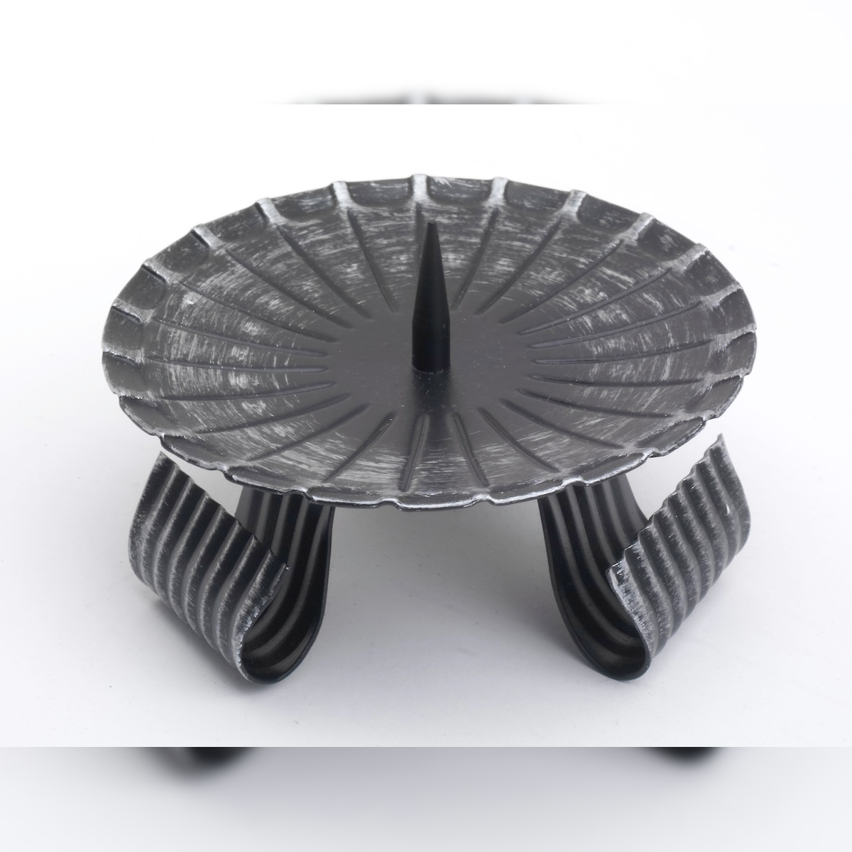 Kerzenleuchter Schwarz gelackt aus Eisen mit Dorn Ø 12 cm, Ideal für Taufkerzen, Kommunionkerzen