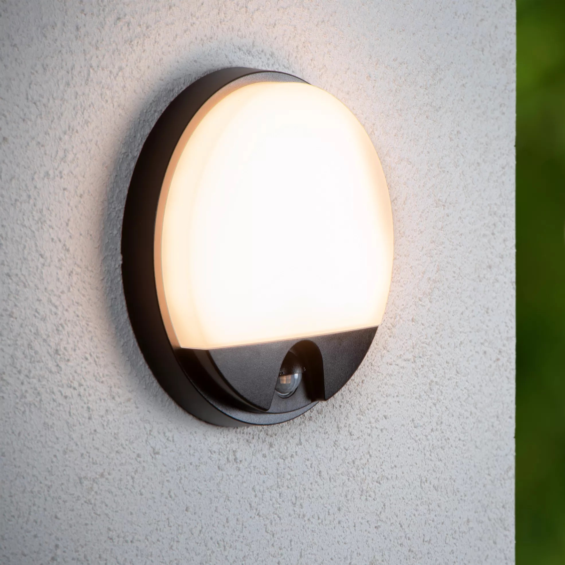 Lucide Hups IR - buiten wandlamp met sensor - Ø 21 x 4,9 cm - 10W LED incl. - IP54 - zwart
