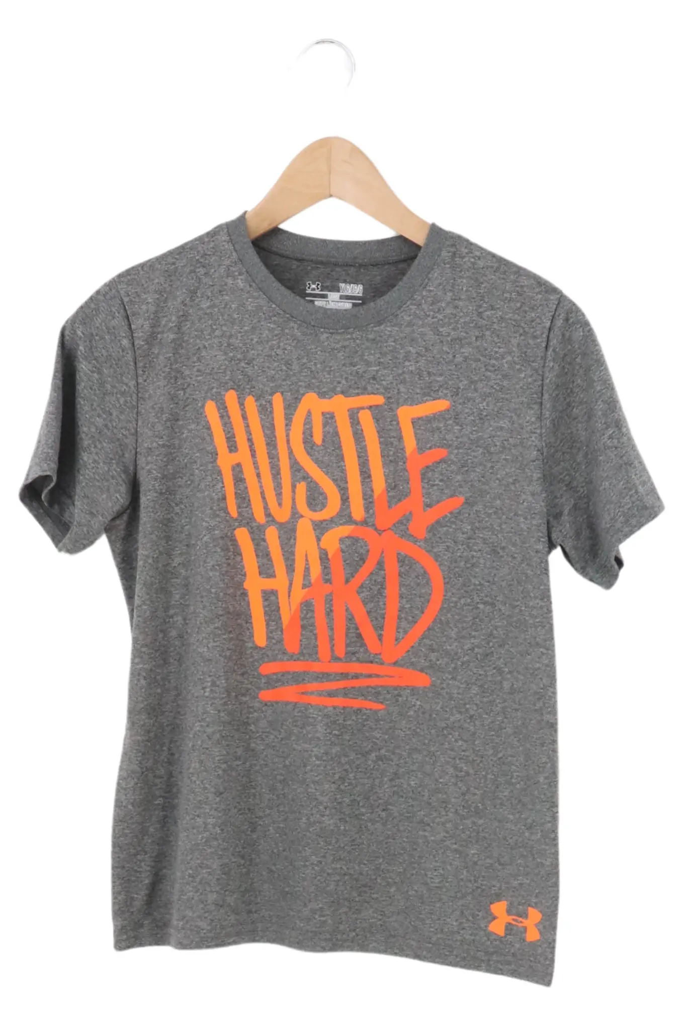 UNDER ARMOUR Kinder Sport Shirt Gr. L Grau Orange Schriftzug