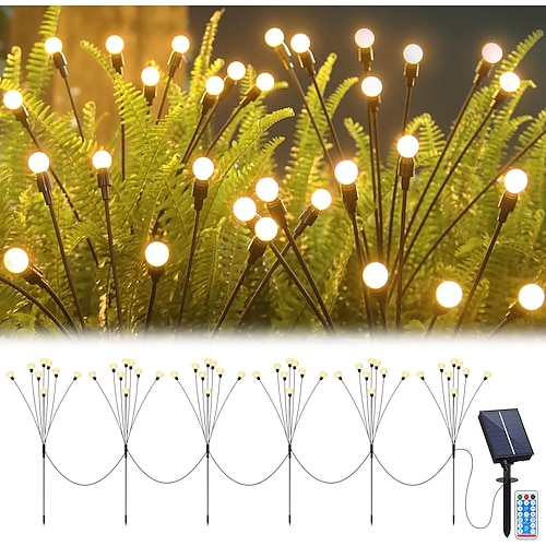 6 in 1 Luce di inserimento a terra impermeabile solare Luce lucciola 48LED I raggi Cortile Giardino Prato Sentiero Parco Atmosfera Decorazione Luce Luce paesaggistica Controllo remoto a 8 funzioni