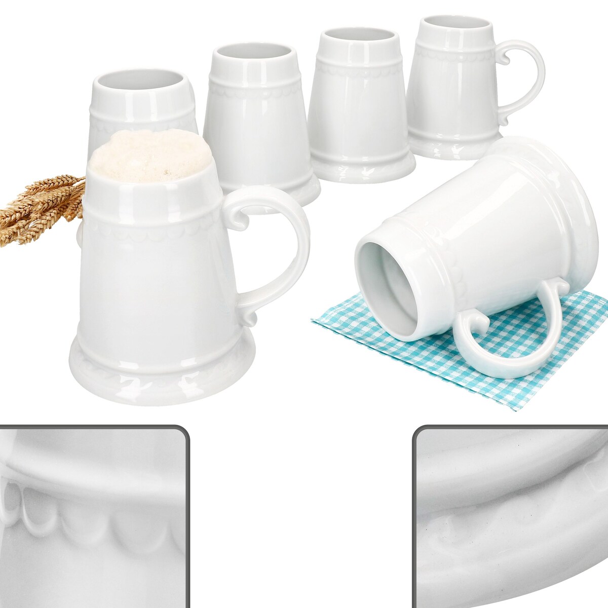 6er Set Residenz-Krug mit Henkel 0,5 Liter konisch Keramik