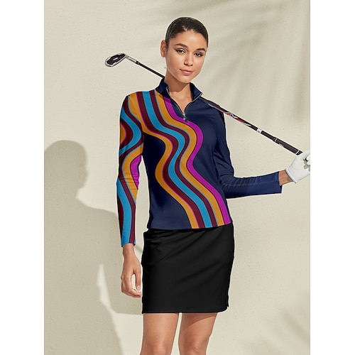 Per donna Polo da golf Blu marino Manica Lunga Top Abbigliamento da golf da donna Abbigliamento Abiti Abbigliamento