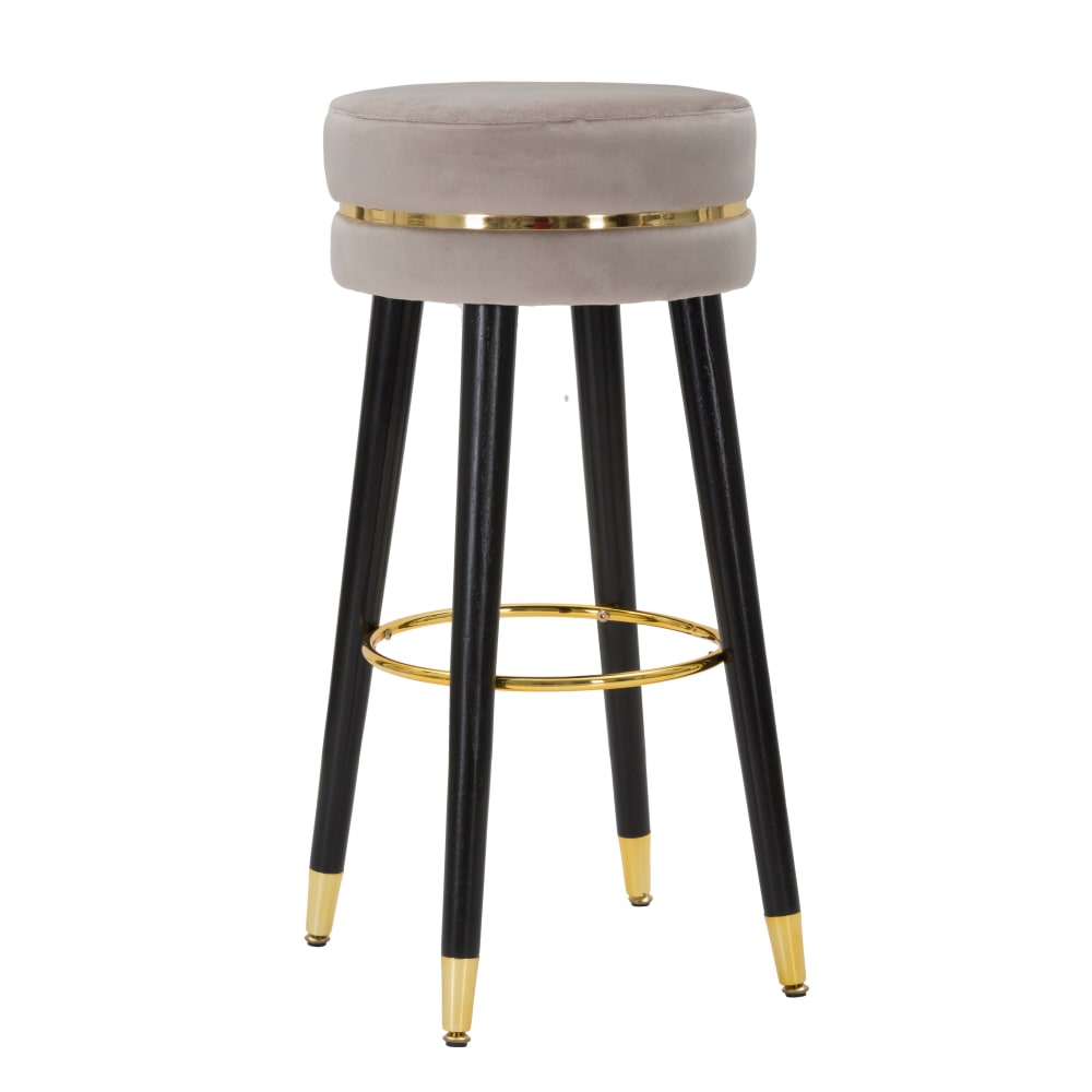 Sgabello bar rotondo in tessuto grigio con gambe in legno Ø cm 35x74