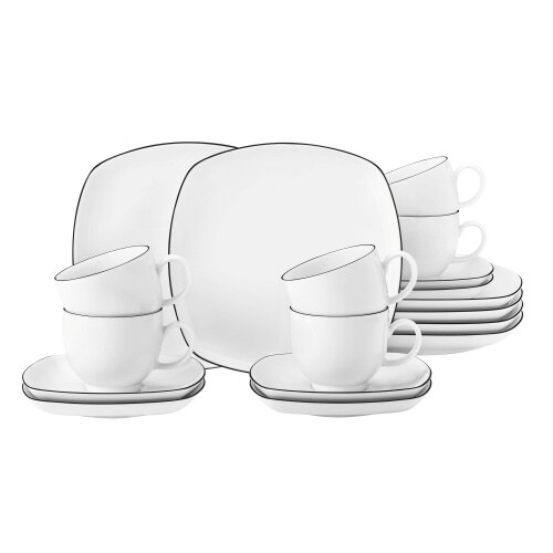 Seltmann Weiden Lido Black Line Kaffeeservice 18tlg. eckig