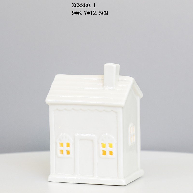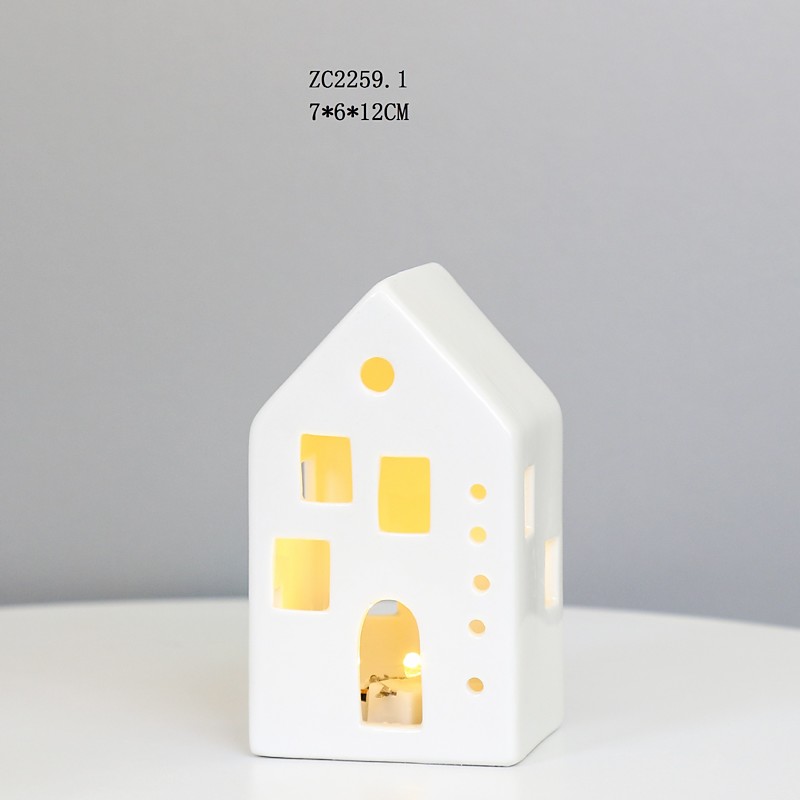 Christmas white ceramic hollow house LED electronic night light indoor living room bedroom kitchen study desktop decoration light ornament light LR44 3 battery candle holder prop