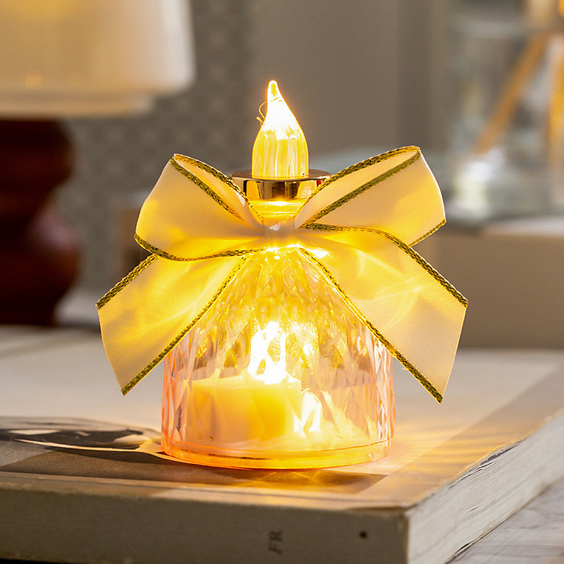Christmas bow ribbon ceramic translucent pentagonal LED gift box decorative light indoor bedroom study dining room party desktop decoration light LR44 battery 11CM