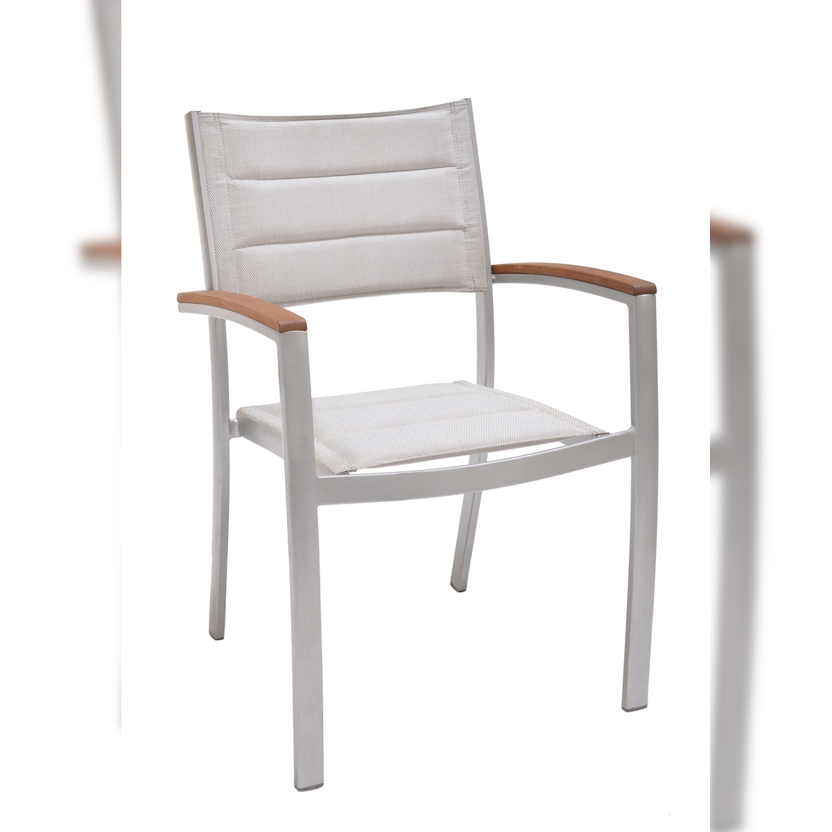METRO PROFESSIONAL Stapelstuhl gepolstert mit Armlehne Lynx, Alu/Textilen-Bespannung, silber