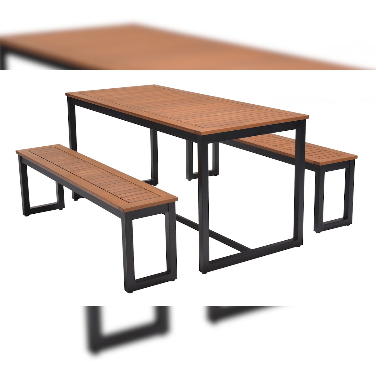 METRO PROFESSIONAL Bierzeltgarnitur 3-tlg. Lynx, Alu/Eukalyptus, 1 Biertisch 161 x 70 cm, 2 Bierbänke 147 x 30 cm, schwarz