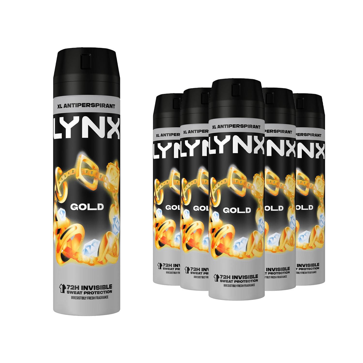 Lynx Mens Xxl Gold 72H Sweat Protection Anti-perspirant Deodorant 6x250ml - Size 250 ml | Lynx Sale | Discount Designer Brands