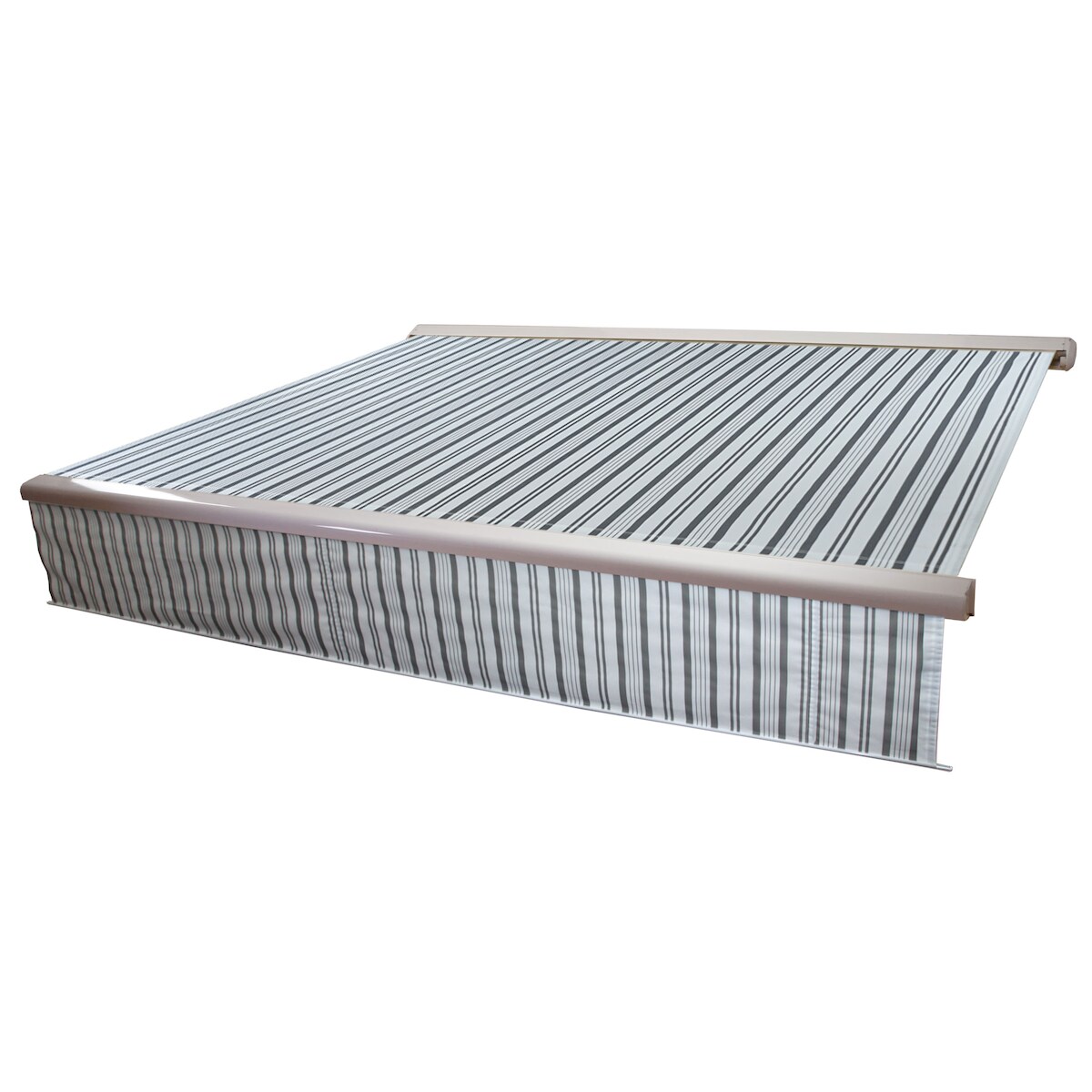 Mendler Volant für elektrische Vollkassetten-Markise T124, 5x3m ausfahrbarer Volant Polyester ~ grau-weiß