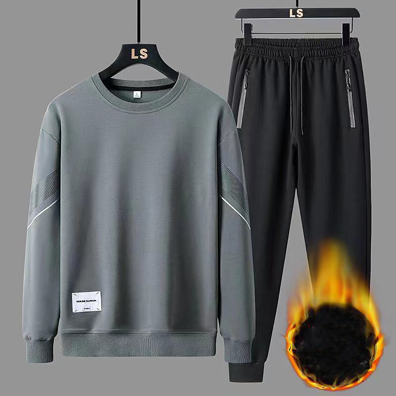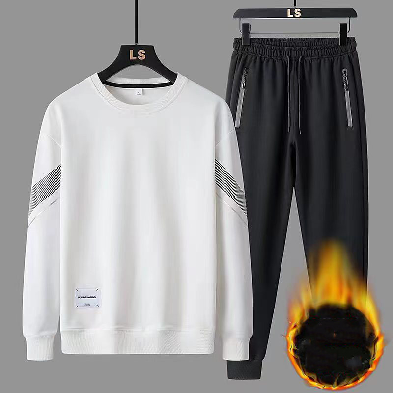 Men's Tracksuit Sweatpants Fleece Tracksuit Pocket Printed Clothing Suit Fall Black White Gym Workout Sports Windproof Long Sleeve Sport Activewear Micro-elastic Regular Fit