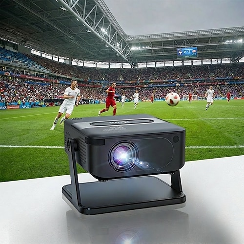 Tragbarer, smarter Mini-Projektor mit WLAN und Bluetooth, um 180° drehbarer Mini-Projektor für Filme im Freien Sportlich, unterstützt 4K, perfektes Geschenk für Fußballfans zur Spielsaison 2026,