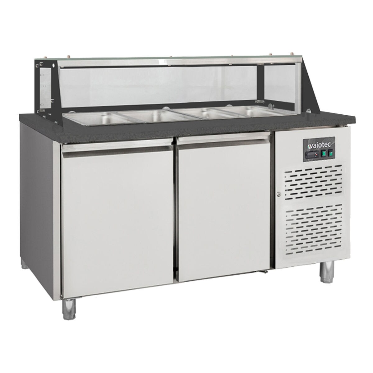 vaiotec Zubereitungstisch / 2-fach mit Türen, Glasaufbau, für 4x GN 1/1 "schwarz", 1500 x 800 mm