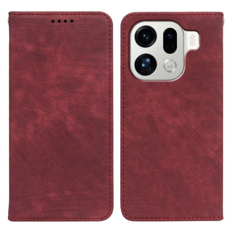 Oppo Find X9 Pro 5G Fodral Äkta Läder Magnetiskt - Röd