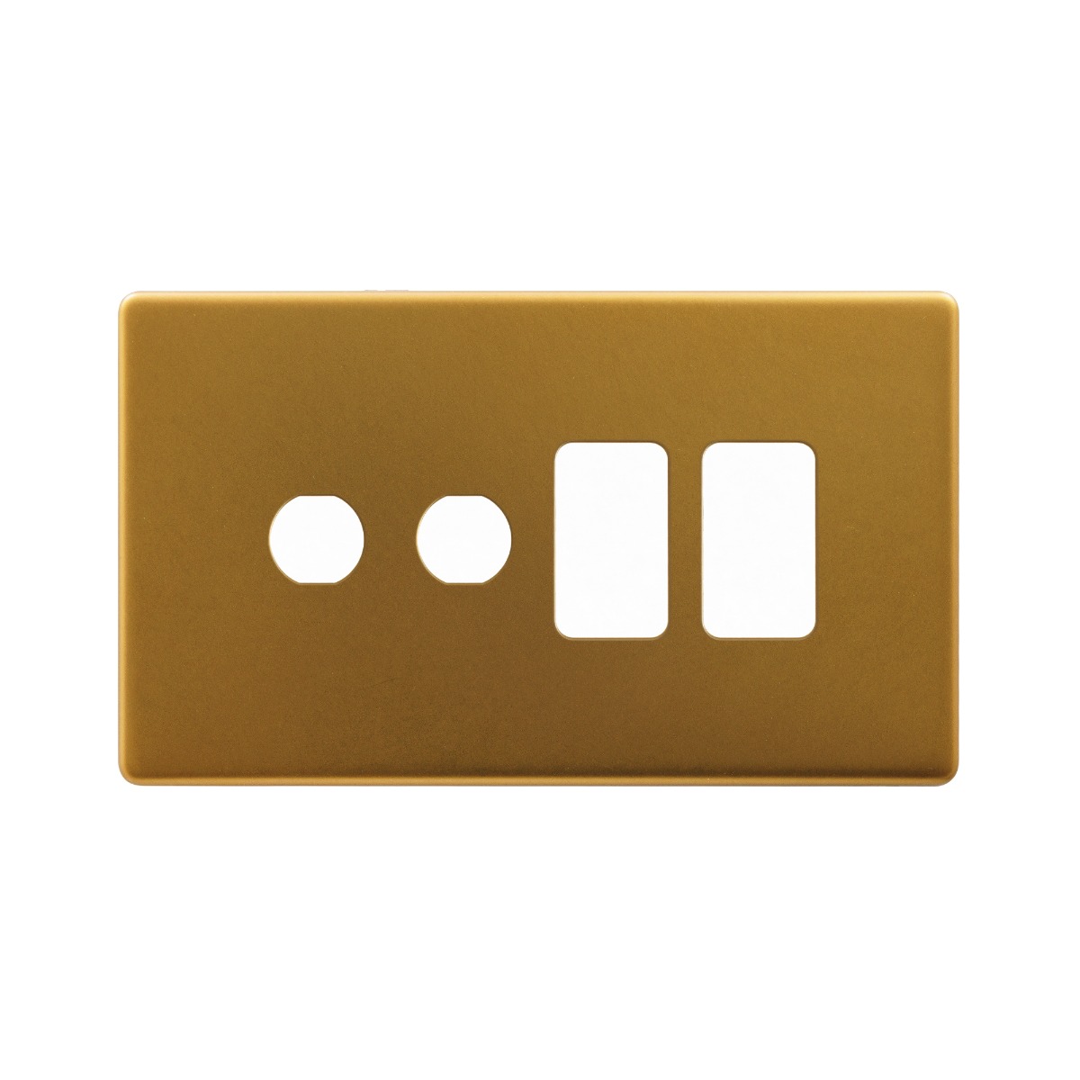 Soho Lighting Brushed Brass 4 Gang Switch with 3 Dimmers (3 x 2-Way intelligent Dimmer & 1 x 2-Way Switch)