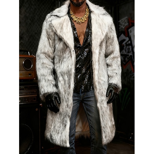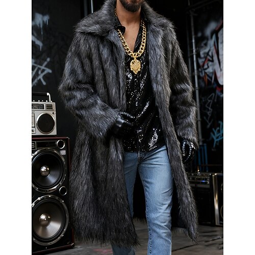 Per uomo Giacca Casual Cappotto in Pelliccia Sintetica Casuale Quotidiano Felpato Autunno Inverno Tinta unica Streetwear Quotidiano Collo ripiegato Lungo Argento Nero Bianco Marrone Grigio scuro