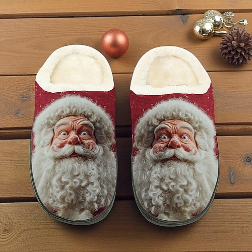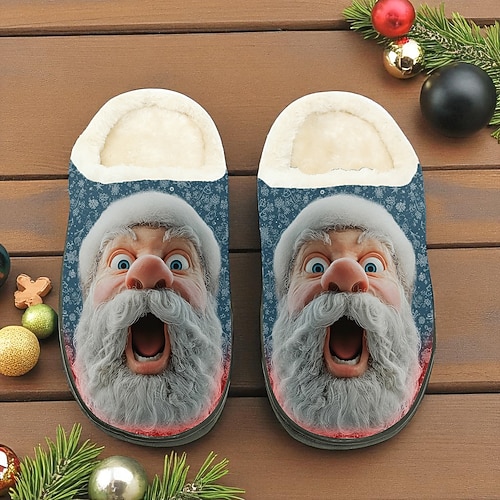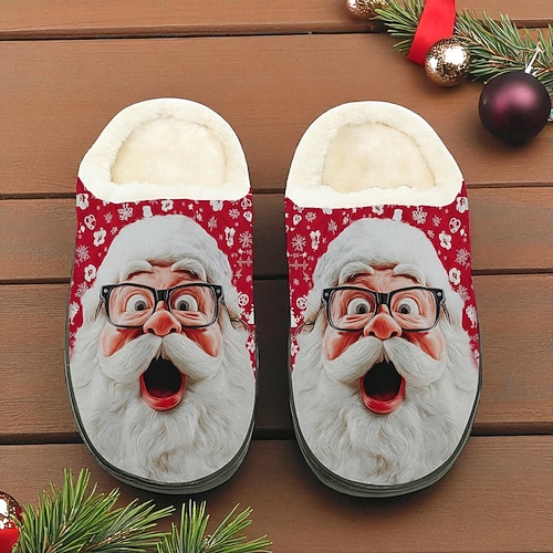 pantofole da uomo in pile con stampa di Babbo Natale, divertenti scarpe da interno con cartoni animati natalizi, calde pantofole da casa in peluche perfette per le vacanze invernali e come regalo