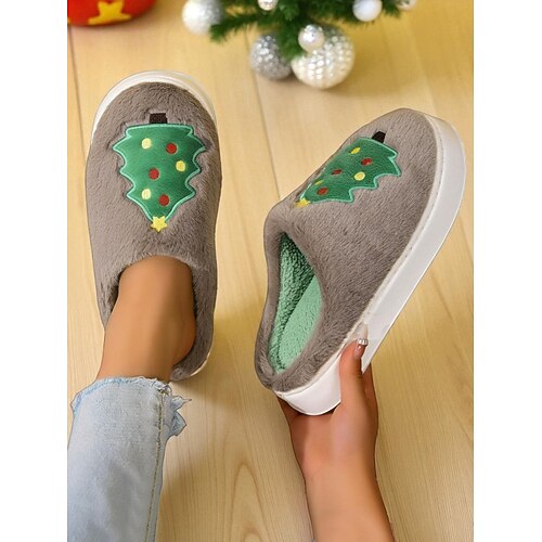pantofole di peluche a forma di albero di Natale da donna: calde scarpe da interno in pile per l'inverno, le vacanze e il relax a casa