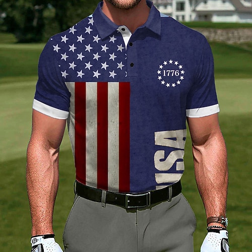 Giorno dell'Indipendenza Americana Per uomo Golf Polo Sportivi Manica Corta Magliette polo Camicie con Colletto Casual Athleisure Abito da festa Bottoni Estate Blu Blu 1 Blu 2#