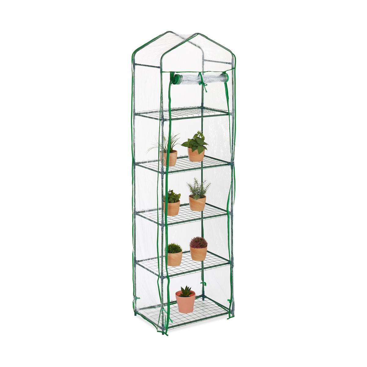Relaxdays Gewächshaus Balkon, HBT: 193 x 58 x 36 cm, 5 Etagen, Eisen & PVC-Folie, Foliengewächshaus, transparent/grün