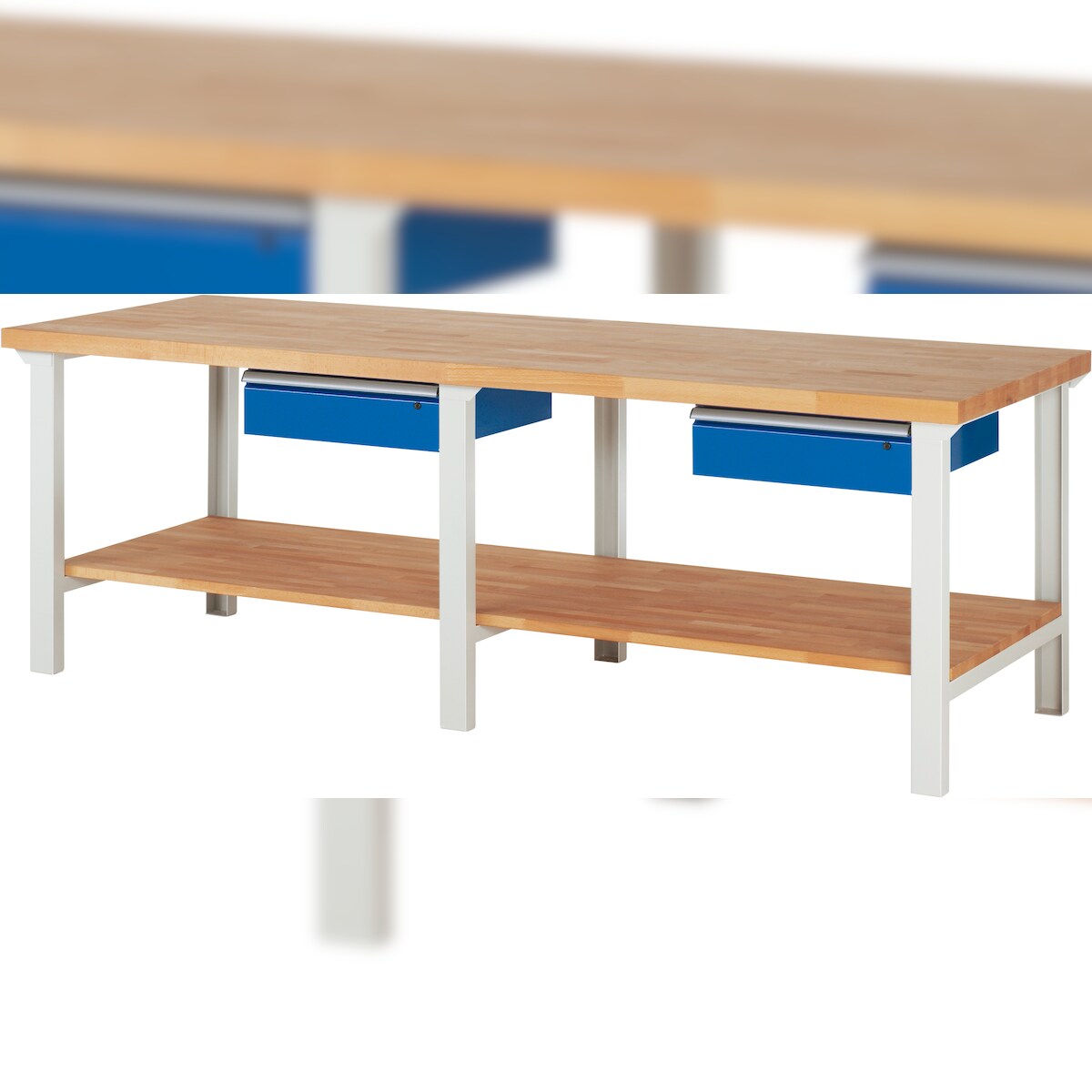 PROREGAL Werkbank Serie 7000 - Modell 7001 | HxBxT 84x250x90cm | 2x Schublade + Ablageboden | Schubladenmaße 2x150mm