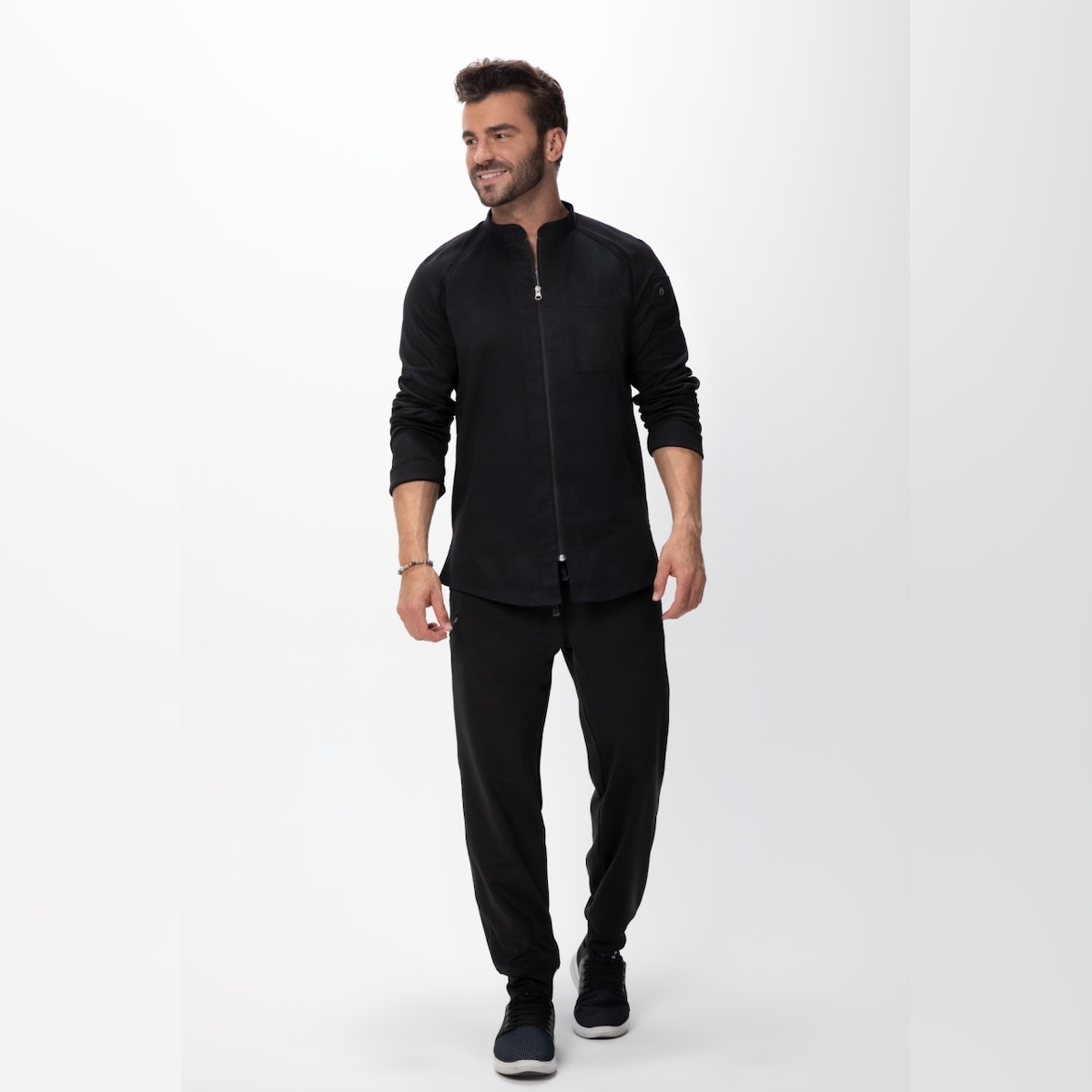 Chef Works® Kochjacke NEPAL Flex Serie nachhaltig, Reissverschluss, Cool Vent™, Schwarz, Größe L