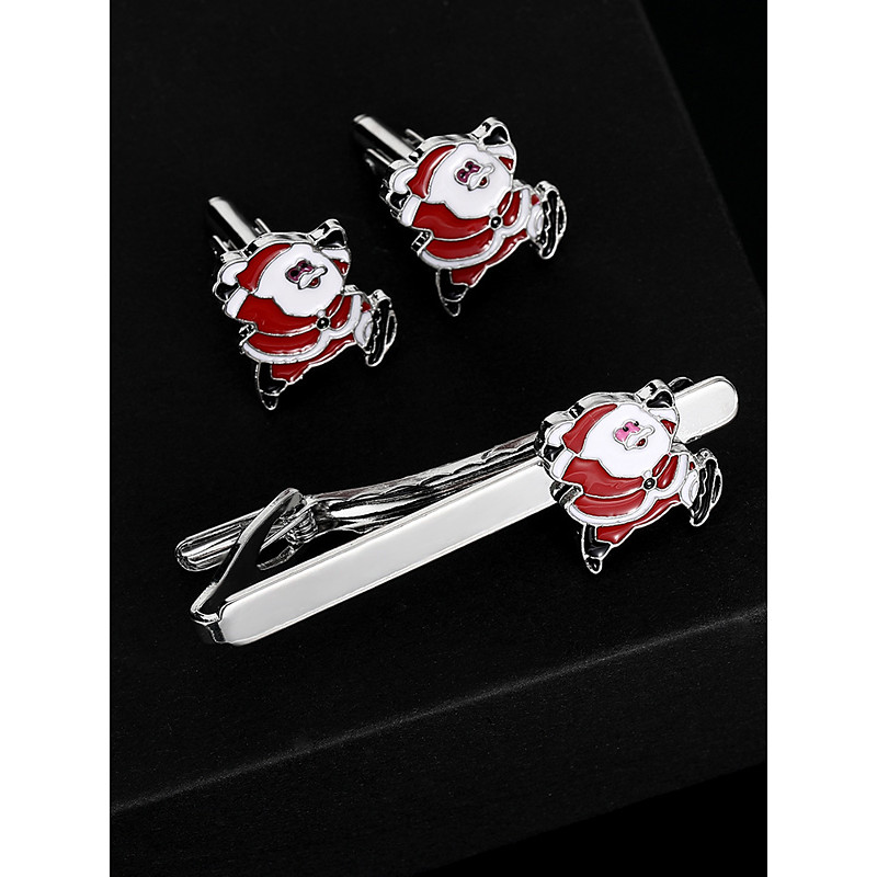 Men's Christmas Santa Cufflinks and Tie Clip Set – Alloy Material, Festive Design for Holiday Parties Formal Occasions