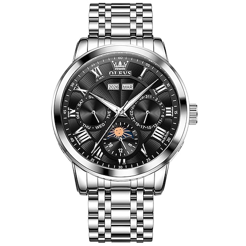 OLEVS Da uomo Orologio meccanico Creativo Lusso Moda Affari Scheletro cavo Automatico a Carica Automatica Tourbillon Fase Lunare Acciaio inossidabile Pelle Guarda
