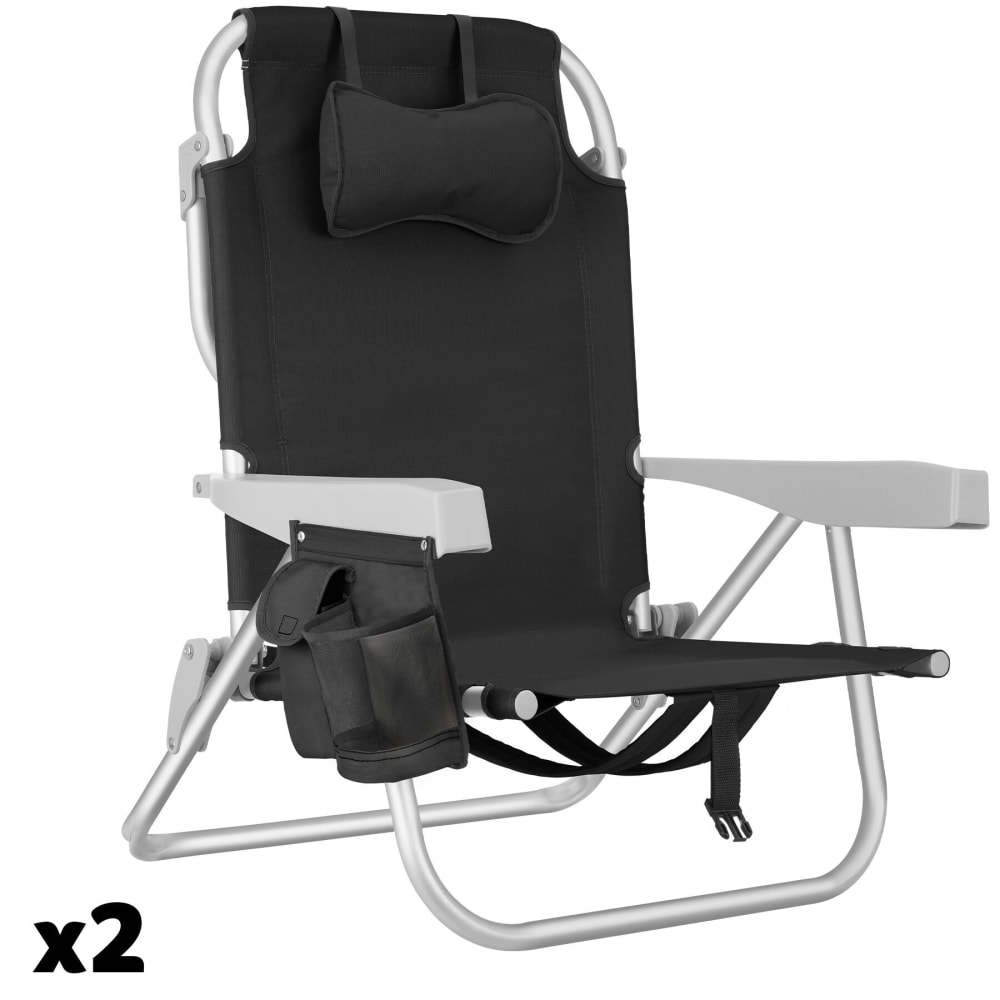 Set di 2 sedie da spiaggia nere pieghevoli con schienale regolabile