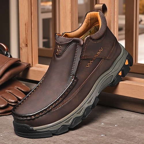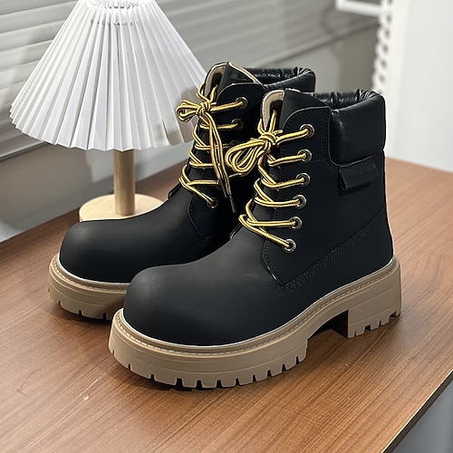 stivali stringati da uomo in similpelle nabuk gialla con colletto imbottito e suola spessa, scarpe casual da lavoro per escursioni, campeggio e uso quotidiano