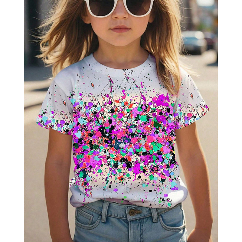 Girls' 3D Graphic Tee Short Sleeve Summer Spring Fashion Basic Kids 4-12 Years Crew Neck Casual Daily Outdoor Regular Fit