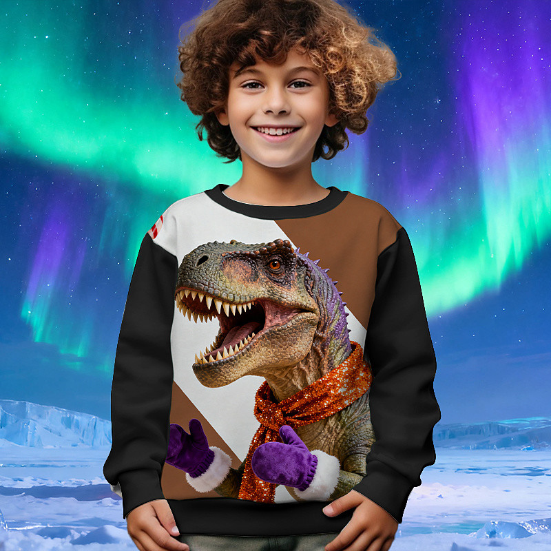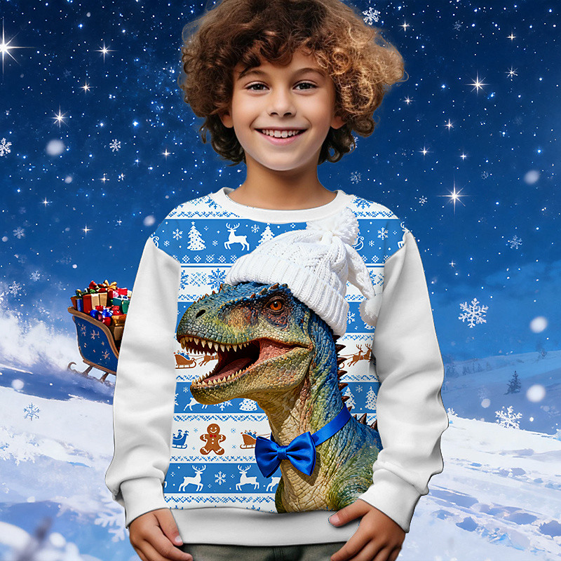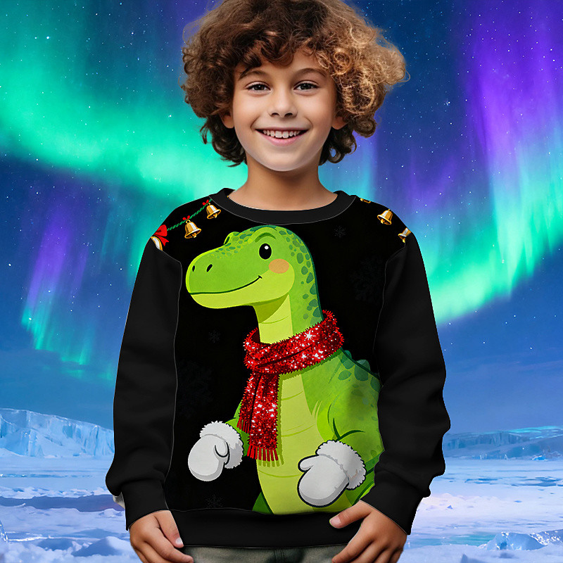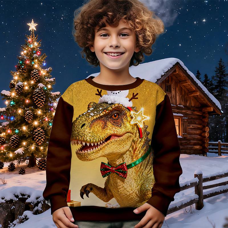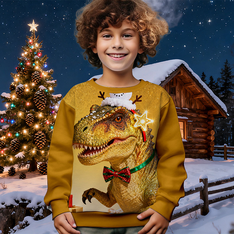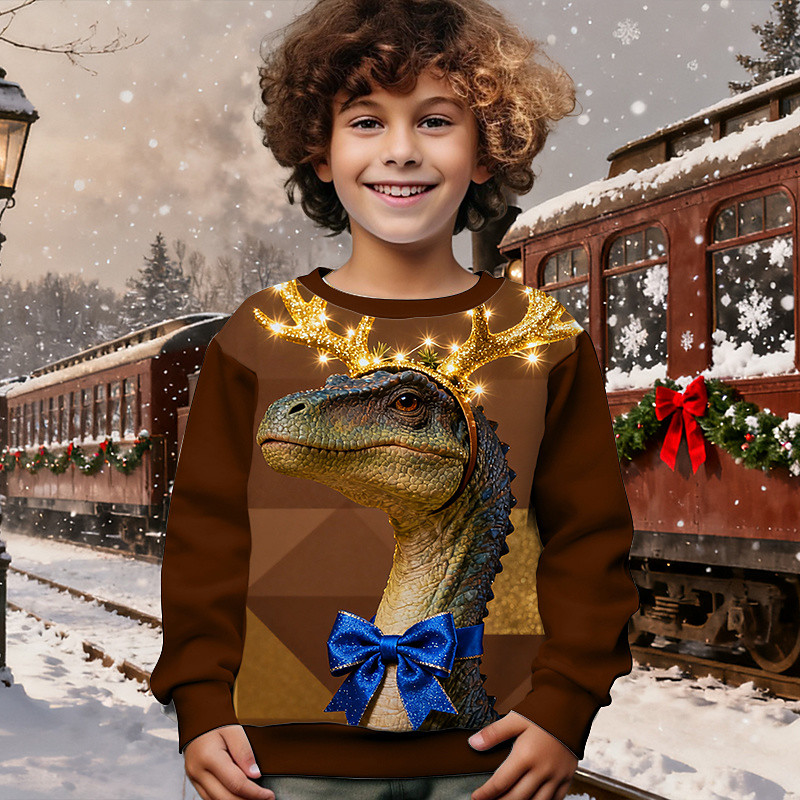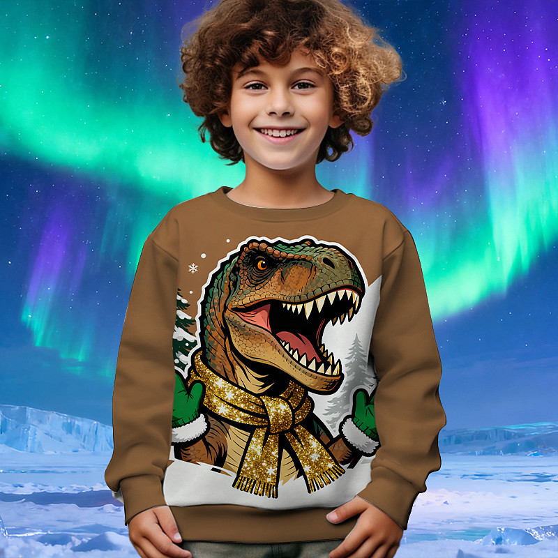 Christmas Boys' 3D Dinosaur Sweatshirt Long Sleeve Spring Fall Fashion Basic Kids 4-12 Years Crew Neck Outdoor Casual Daily Regular Fit