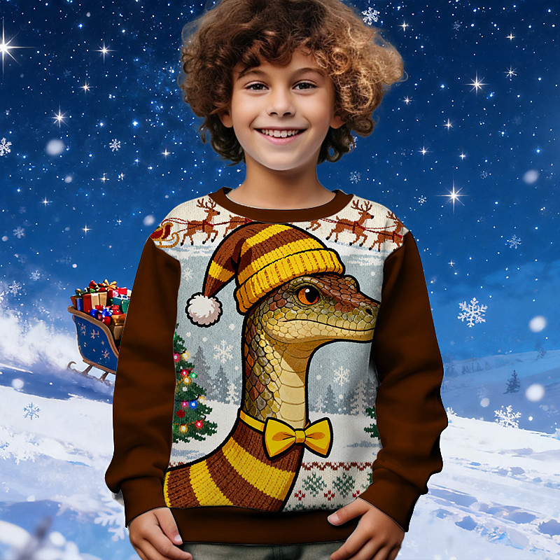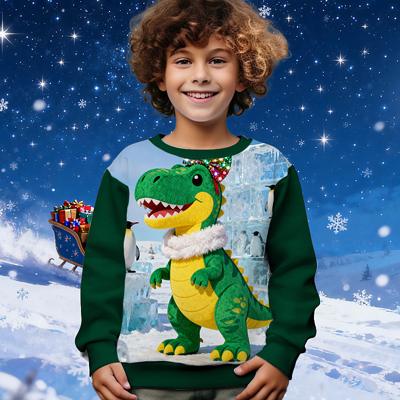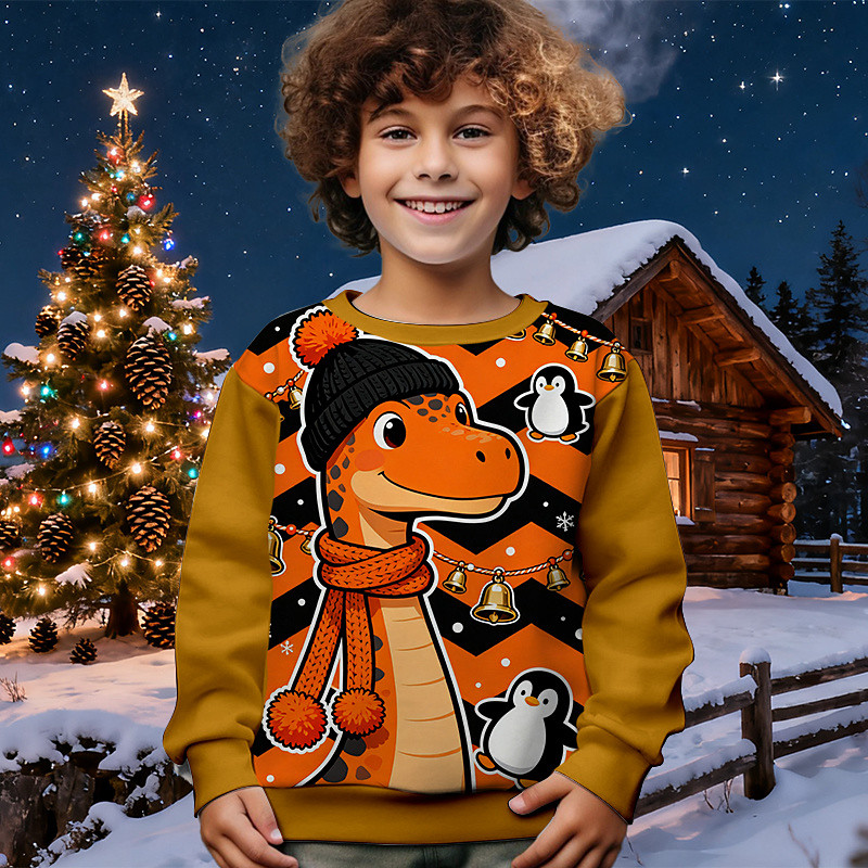 Boys' 3D Dinosaur Snowman Sweatshirt Long Sleeve Spring Fall Fashion Basic Kids 4-12 Years Crew Neck Outdoor Casual Daily Regular Fit