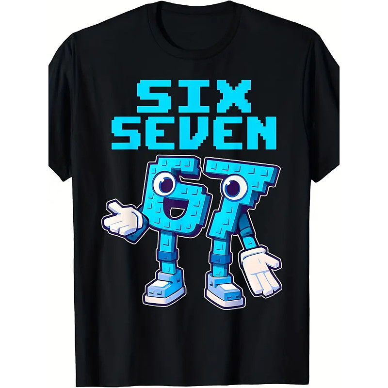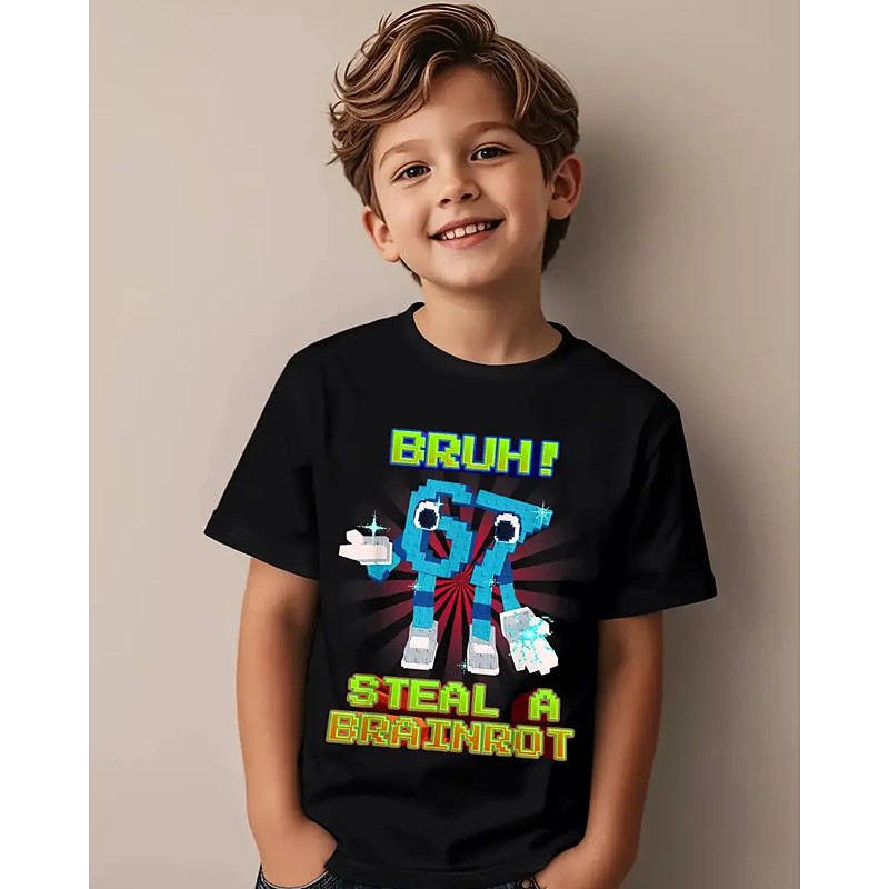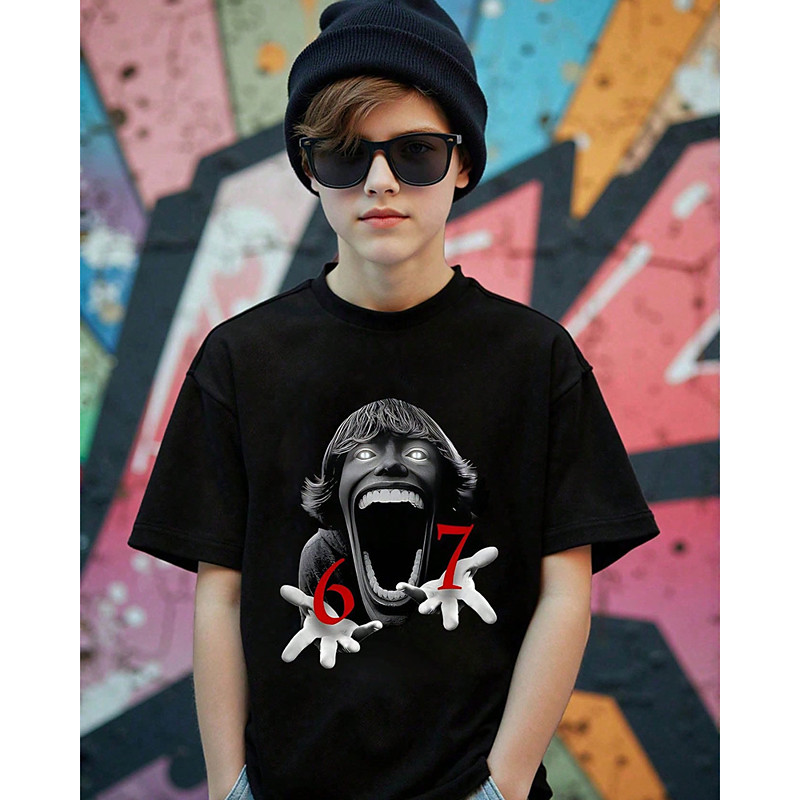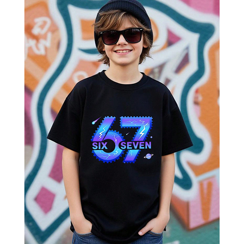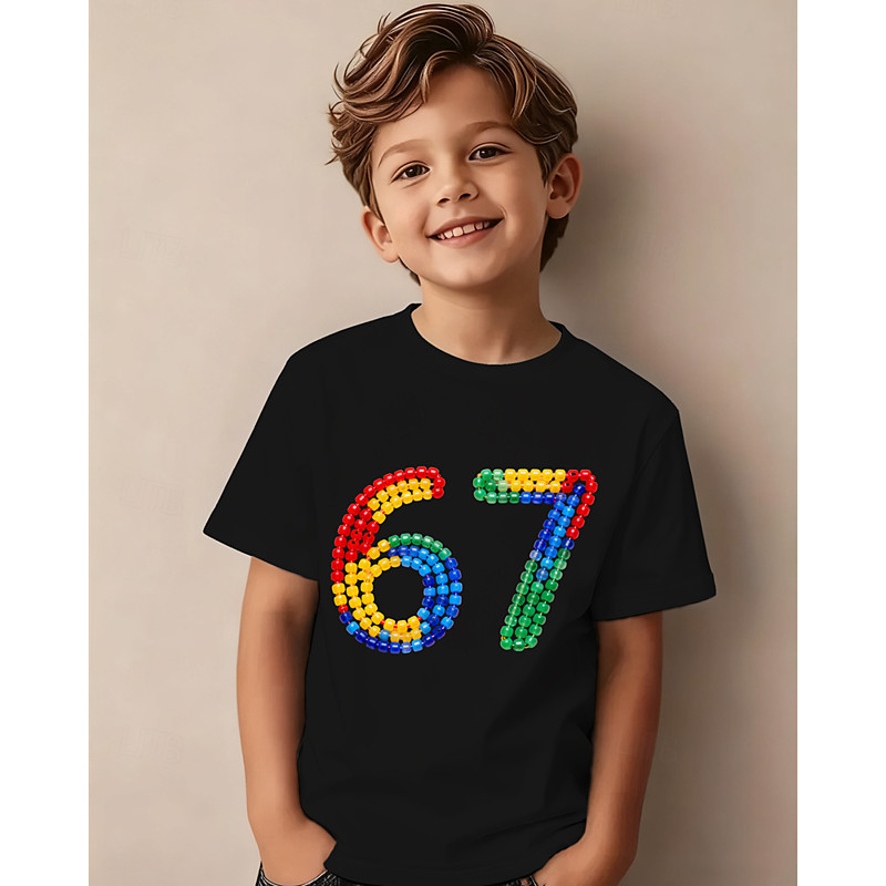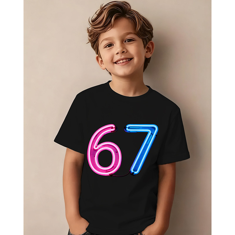 Cotton Kids Boys' Black Print Funny Slang 67 T shirt Blouse Crew Neck Short Sleeve Outdoor Dailywear Fashion Streetwear Designer Summer