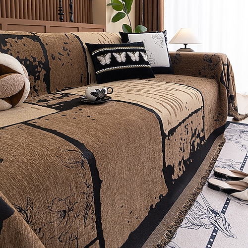 Chenille Full Cover Sofa Throw, Luxury All-Season Sofa Slipcover Blanket, One-Piece Sofa Cover