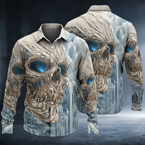 Per uomo Frozen Teschio di ghiaccio Camicia Camicia con Bottoni Manica Lunga Stile gotico oscuro Ferie Abbigliamento casual alla moda Primavera Autunno Collo ripiegato Stampa 3D camicie con colletto