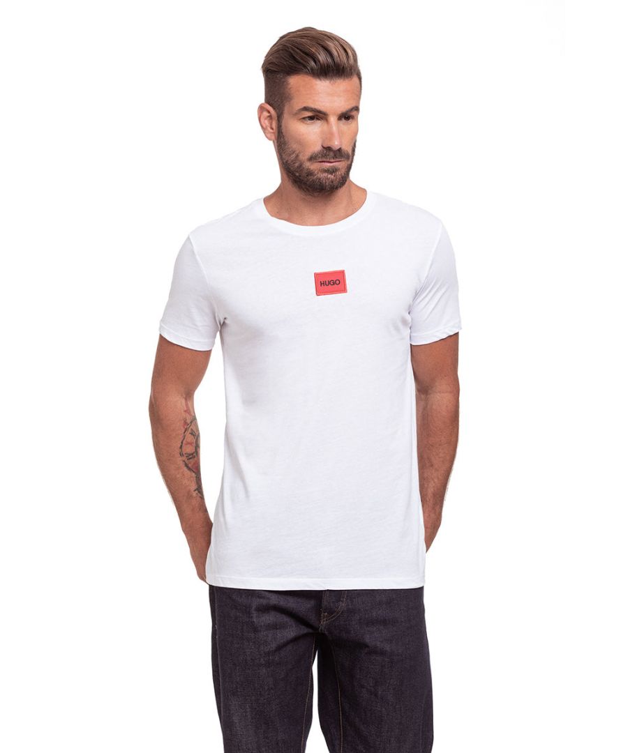 Hugo Mens Red Logo Patch Sustainable T-shirt - White Cotton - Size Large | Hugo Sale | Discount Designer Brands