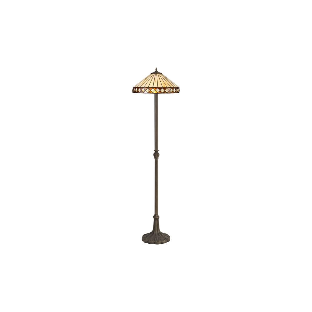 Sleek 2 Light Stepped Design Floor Lamp E27 With 40cm Tiffany Shade Amber/Cream/Crystal/Aged Antique Brass Luxuria