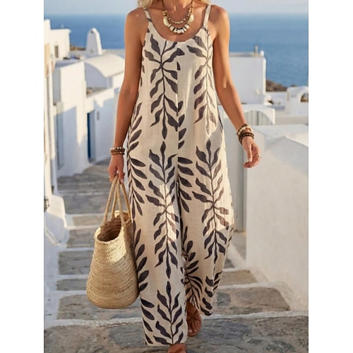Per donna Tuta Streetwear Tinta unica Senza Maniche Molto stondata Stampato Quotidiano Spiaggia Vestibilità comoda Nero Bianco Verde Estate
