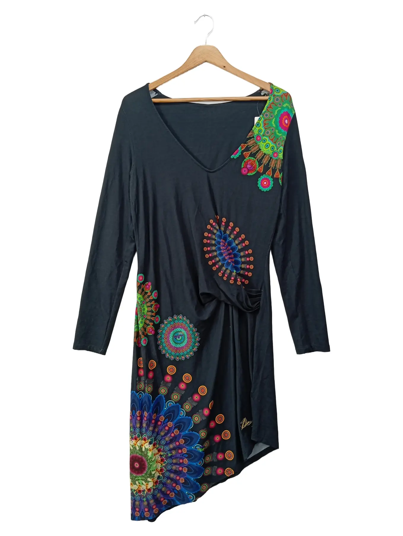 DESIGUAL Damenkleid L Schwarz Bunt Asymmetrisch