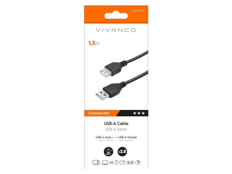 Vivanco High-Speed-USB-A-Stecker-Buchse-Kabel für Datenübertragung und Aufladen, schwarz