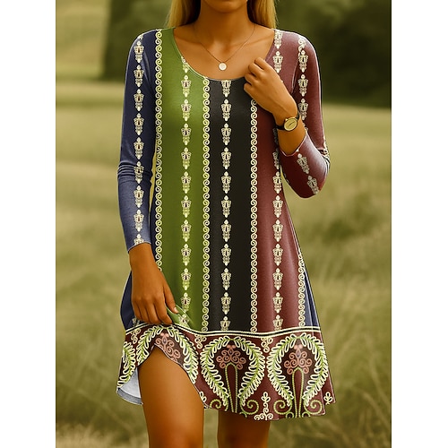 Per donna Abito al ginocchio Abito a Maglia Vestito Casual Vestito T-Shirt Vestito Estivo Casual Vestibilità regolare Grafico Paisley Manica Lunga Girocollo Rosa Blu Viola Marrone Primavera Autunno