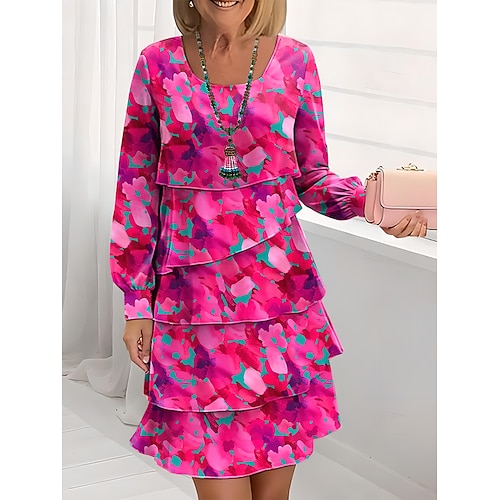 Per donna Abito al ginocchio Vestito Casual Vestito in Chiffon Abito a Tubino Elegante Vacanza Compleanno Vestibilità regolare Floreale Manica Lunga Girocollo Rosa Blu Verde Estate Primavera Autunno