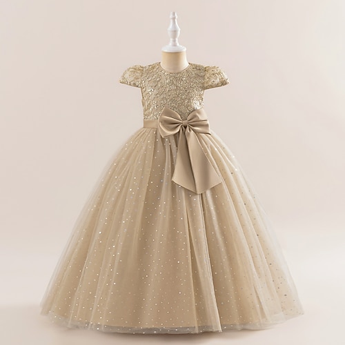 Bambino Da ragazza Vestito da festa Tinta unica Manica corta Occasioni speciali Da principessa Poliestere Vestito da festa Estate Primavera 2-12 anni 4 anni Champagne Rosa Blu